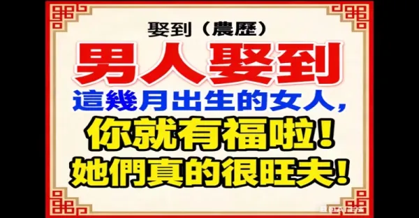 男人娶到(農曆)這幾月出生的女人, 你就有福啦!!! 她們真的很旺夫