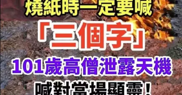 燒紙時一定要喊「三個字」!101歲高僧泄露天機:很多人不知,喊對當場顯靈……