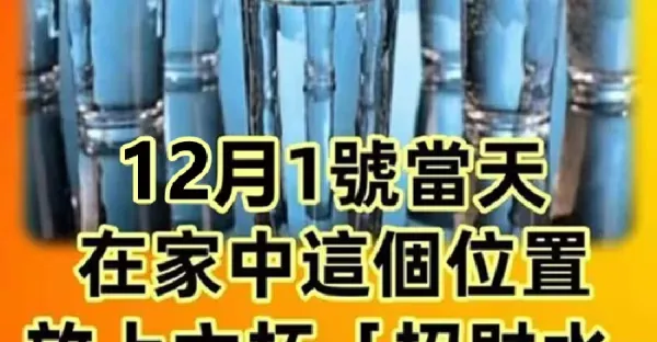12月1號當天,在家中這個位置,放上六杯「招財水」想不好運都難