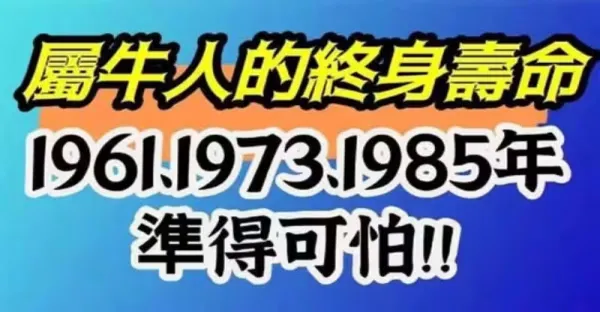 屬牛人的終身的壽命: 1961、1973、1985年, 准得可怕
