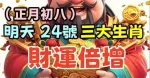 明天年初八 三生肖 橫財最旺!