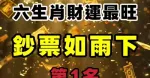 【10月2日】六生肖財運最旺 ,鈔票如雨下!第一名「 錢自動上門 ~」