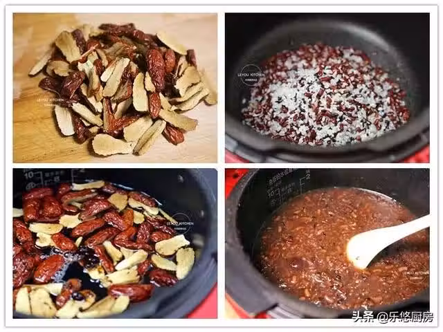 第三步:把紅棗、紅糖放入鍋中,再放入1200毫升左右的清水,然後蓋好鍋蓋,開始煮粥就可以了。如果電飯鍋有「雜糧粥」功能,就選擇「雜糧粥」。沒有這個功能的話,記得一定要多煮一會兒,直至豆子變軟。