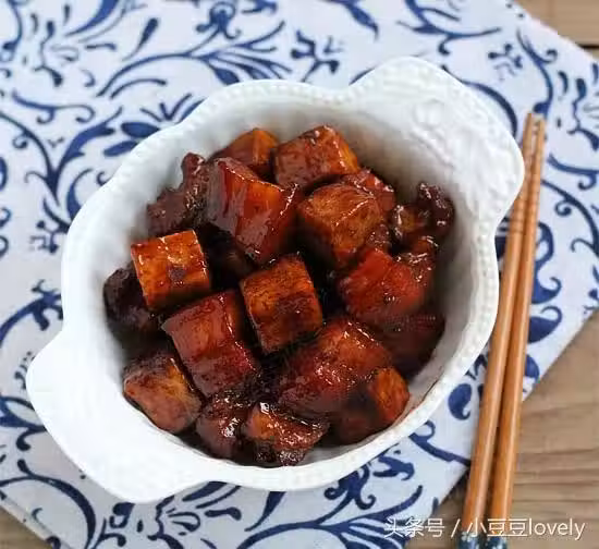 倒入開水沒過五花肉,大火燒滾後轉小火慢燉50分鐘,放入炸好的芋頭塊再繼續煮10分鐘,最後大火收汁即可。