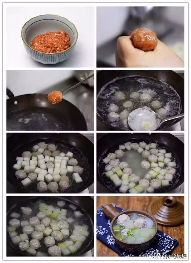 第十步:待丸子都放入鍋中後,大火燒開。然後用勺沿著鍋邊把浮沫撇出去。(這一步會使湯水更加清澈、口感更加鮮香)