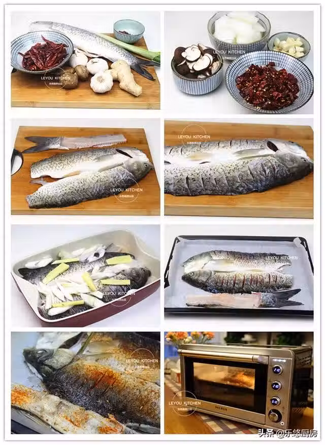 第六步:魚肉腌好後取出,瀝干水分。然後放到鋪有烤紙的烤盤中,如圖。接下來放到預熱好的烤箱,上下火210度烤15分鐘。(中間可以翻一次面。)