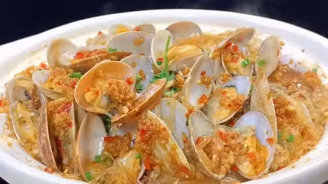 粉絲一定要用冷水泡發,這樣吃起來口感才更好。鍋底鋪上一層金針菇,放入泡好的粉絲,花甲、大蝦。好吃的關鍵就是這個根據比例熬制好的蒜蓉醬,還可以用來做蒜蓉生蚝、蒜蓉茄子,味道都很不錯,淋上一圈生抽,一碗清水,蓋上蓋子中火煮五分鐘,最後撒上蔥花,這樣做的蒜蓉花甲粉比外面買的還好吃。
