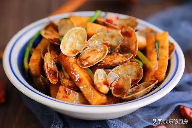 第二步:準備一個大一點的盆子,往盆中放入少許清水,再放入1勺鹽,攪拌至鹽融化。然後把花蛤放入盆中,浸泡2個小時讓其吐沙。大家在買花蛤的時候,也可以問一下,如果花蛤已經泡了很長時間,回家後洗乾淨直接做就可以了,不用再泡。