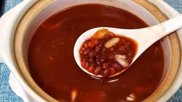 提前泡好紅豆,先把紅豆、玉米、百合放入砂鍋,加適量的水,大火燒開,撇去浮沫,用小火慢燉一個半小時,然後放上紅糖,繼續用小火慢燉十分鐘即可,非常滋補的紅豆玉米百合湯就做好了。