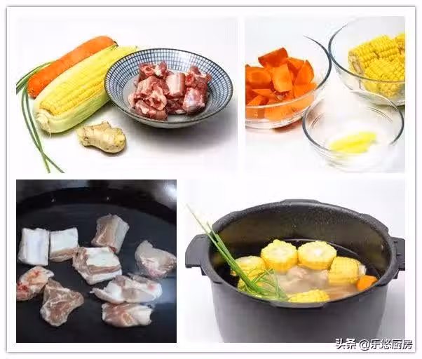 第四步:把焯好的排骨、胡蘿蔔、玉米、薑片、香蔥一起放入電飯鍋中,再倒入1大碗清水,然後蓋好鍋蓋,選擇燉湯功能即可。燉好後再往鍋中放1小勺鹽調味。(燉湯時候,香蔥建議放整根的,這樣方便在燉好後撈出)