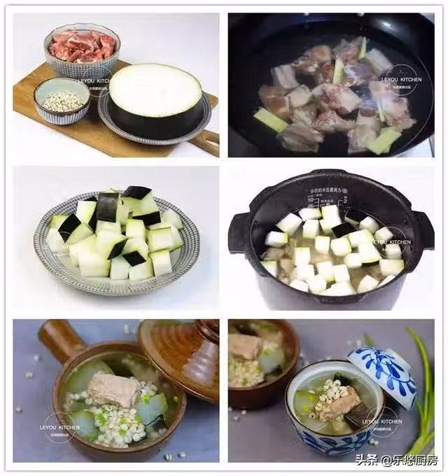 第四步:薏米淘洗乾淨,然後和冬瓜塊、排骨一起放到電飯鍋中,再倒入1500毫升的清水,蓋好鍋蓋燉1個小時。接下來,放入2勺鹽,再燉10分鐘即可。