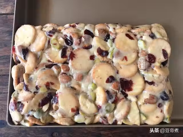 9、待稍微降溫後撒上奶粉,切成小塊即可。
