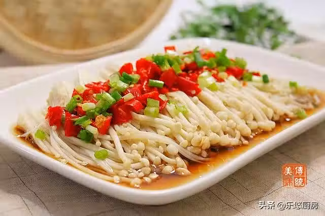 第三步:將金針菇去掉根部,然後清洗乾淨放入盤中。