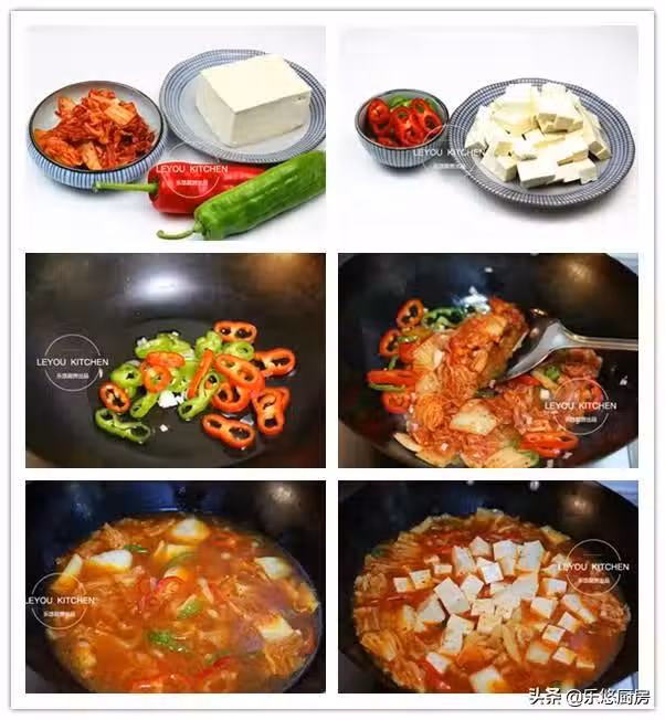 第六步:往鍋中放入1勺韓式辣醬攪拌均勻,然後將豆腐放入鍋中,大火再次燒開後轉小火燉3-5分鐘,出鍋前再撒少許鹽調味即可。(最好嘗一下再放入鹽哦~)