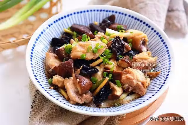 第一步:準備食材。雞腿2個、香菇幾個、木耳幾個、姜適量、香蔥適量。