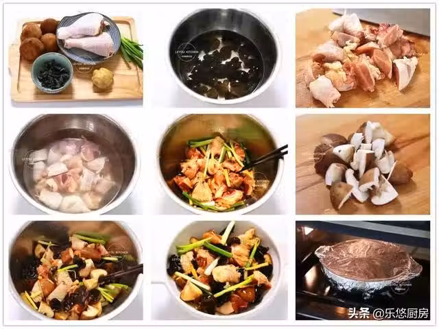 第六步:把香菇切成塊,木耳清洗乾淨撕成小朵。