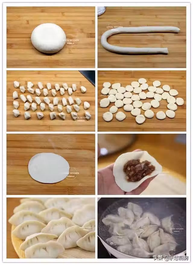 第十六步:煮餃子。鍋中倒入大半鍋水燒開,把餃子放入鍋內,再放入一勺鹽(放鹽可防止餃子粘連)。煮餃子的過程中,可以將鍋蓋蓋上,直到餃子成熟。