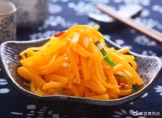 1. 將嫩南瓜連皮洗凈,切細絲,攤在太陽下晾曬半天。