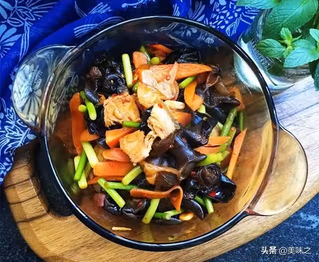 7、加入木耳翻炒,出鍋加鹽調味即可。