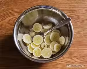 步驟三:熟透的香蕉用小刀切薄片,搗成綿綿的泥,用蛋抽不斷錘壓,越細越好呀,香蕉會出水的。