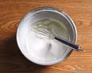 步驟六:最後的糊是這樣~有流動性,又不會太稀,像濃稠一點的酸奶狀態。(太稀變薄餅,太稠樣子不好看,假如太稠可以適當再加一點牛奶進去) PS:有同學用攪拌機直接把以上材料打均勻,也是可以的!