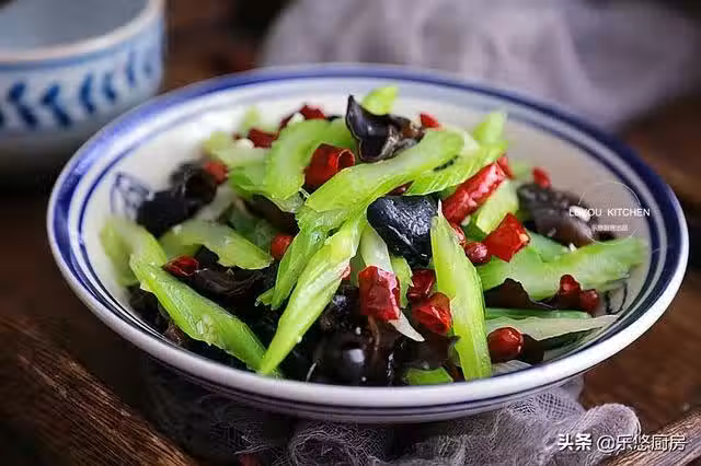 第五步:鍋中倒入適量的水燒開,然後把木耳放入鍋中,再放入一點食用油,焯2分鐘。再把芹菜放入鍋中,焯1-2分鐘。