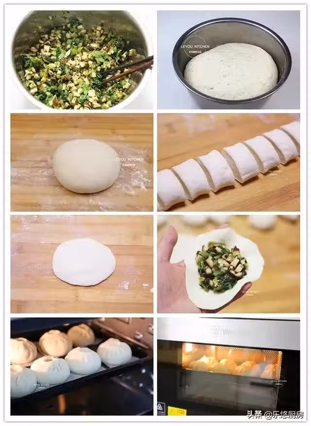 第十六步:發酵結束後開始蒸包子。用蒸鍋的話,中火燒至蒸鍋冒氣後,再蒸十五分鐘左右。用蒸箱的話,時間選擇20分鐘就可以了。蒸好後的包子,不要立馬揭蓋,要在蒸鍋或蒸箱中放置幾分鐘再取出,以免包子突然遇冷後表皮回縮。