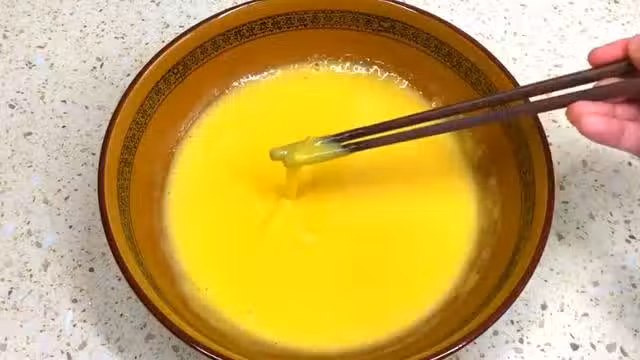 然後就是做蛋糕最關鍵的一步,打發蛋清,很多人失敗都是在這一步上,我們滴3滴白醋或者檸檬汁,白醋和檸檬汁是去腥的,但是也不能多放,多放了就和水一樣了,打發蛋清千萬不能沾水和油,必須是乾淨的容器,用四支筷子是可以打發出固體狀態的,只是相當累,所以建議您用電動打蛋器,大約打發2分鐘到起大泡,倒入三分之一紙杯的白糖,繼續打發到出現螺旋紋理,用筷子插入不倒,就成功了。
