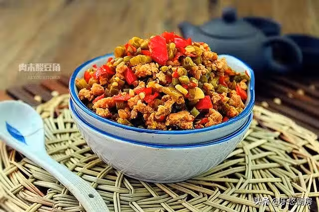 第二步:將瘦肉剁成剁末、酸豆角切末、蒜切末備用。
