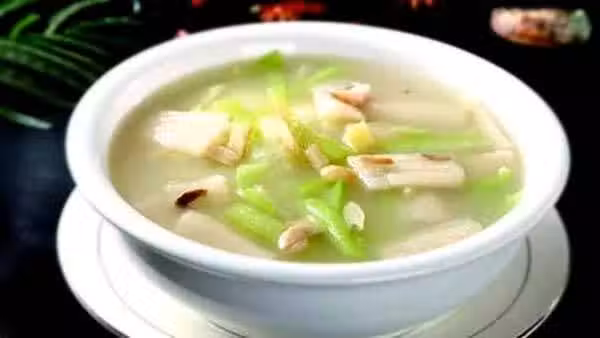 3、坐鍋點火,放入清水,水開後倒入竹蓀、絲瓜片、鹽、胡椒粉、味全高鮮開鍋後即可。