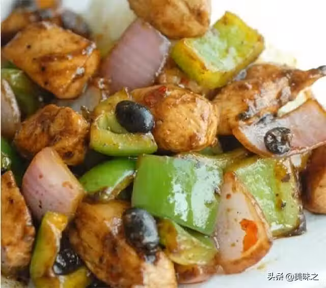 1、青椒切丁,洋蔥切方片,雞肉(以雞腿肉為佳)切塊,用少許水、料酒、蚝油和水澱粉使勁多抓幾下,然後腌大約15分鐘;同時把豆豉切碎。