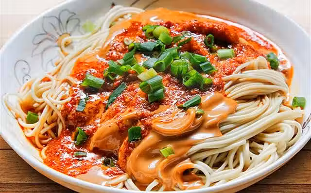 拌面:250克芝麻醬盛入碗里,80克香油溫熱以後緩緩倒入芝麻醬里,沿著一個方向邊倒入邊攪拌,等到化開以後。放入少許老抽、生抽、味精、少許白糖和鹽,接著攪拌均勻就可以了。
