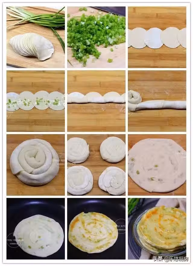 第十一步:烙制雙面金黃,蔥花餅成熟就可以取出裝盤食用。