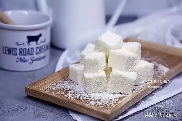 第一步:準備食材。牛奶340毫升、淡奶油200毫升、玉米澱粉60克、糖15克、煉乳10克、椰蓉適量。