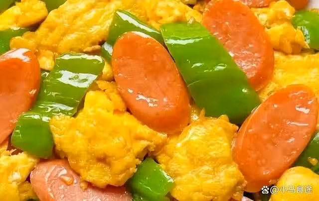 1.青椒去蒂清洗乾淨,再切成小塊備用。火腿斜切成片,幾個雞蛋打入碗中攪散備用。