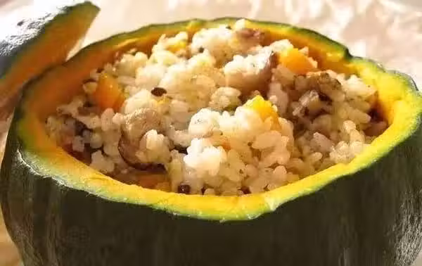 原料:小南瓜、大米、黑米、鮮香菇、薑、鹽、色拉油