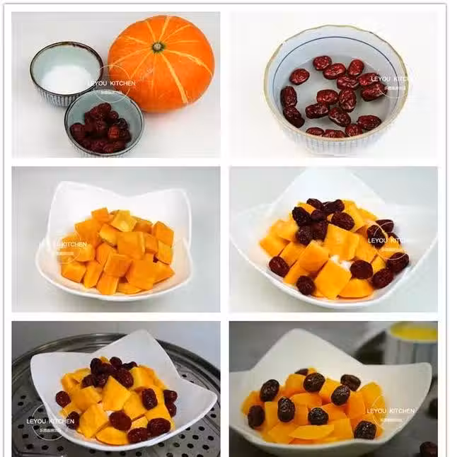 第五步:將整碗南瓜放到蒸鍋中,大火燒十幾分鐘,直到南瓜可以輕鬆用筷子刺穿即可。(蒸製的時間根據南瓜的量和大小來定。)