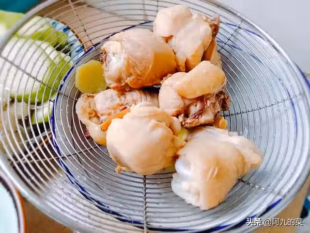 4.然後另起鍋,建議用砂鍋之類的比較適合煲湯用的,將焯好的雞肉再次冷水下鍋,放入剩餘的薑片,大火煮開,再轉小火煲20分鐘