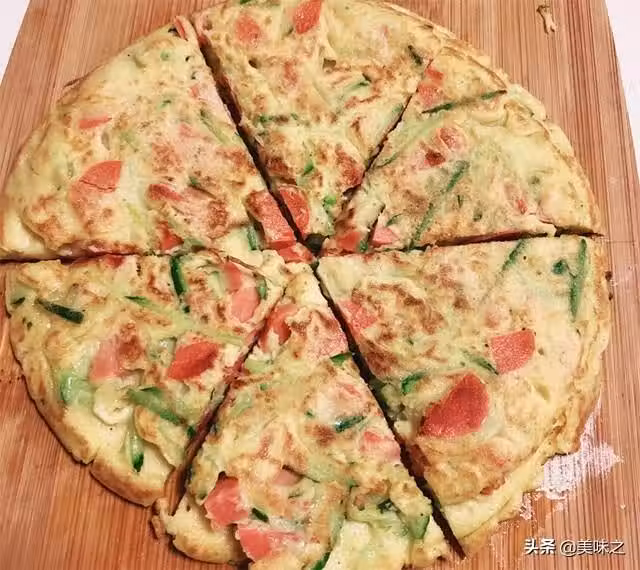 麵粉適量、水磨米粉適量、小青瓜1根、火腿腸2根、雞蛋2個、鹽適量、胡椒粉1g。