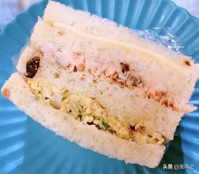 1、三文魚肉是腌制後烤熟去骨的;包菜炒的蛋;吐司是前一天晚上自製切片的。