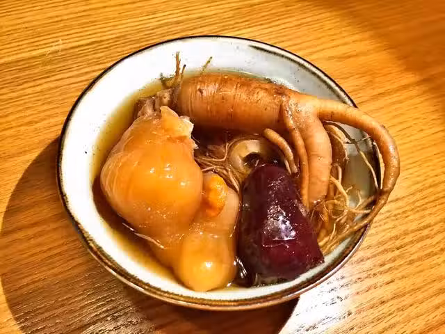 乾花膠適量;鮮人蔘1支;紅棗6個;杞子一把