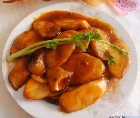 4. 將番茄醬倒入鍋里,加少許的鹽調好味道,倒入炸好的杏鮑菇翻炒勻即可起鍋。