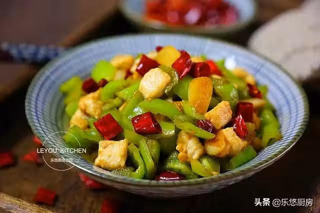 第五步:腌制雞肉的時候,咱們開始準備配菜。把尖椒清洗乾淨,去掉籽,然後切成1厘米大小的丁。蒜切片,姜切片備用。