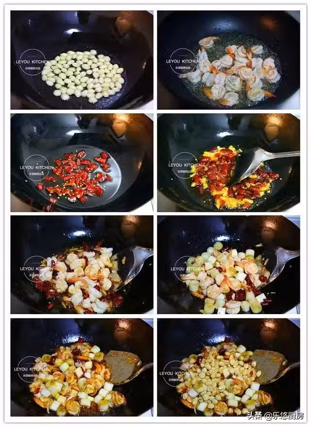 第十四步:出鍋前再把炸好的花生米倒入鍋中,翻炒勻即可出鍋。