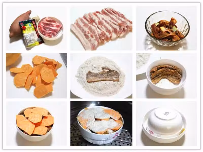 第八步:將碗放入蒸鍋中(盤裡還剩一些蒸肉粉,我都撒在了紅薯上,避免浪費),大火燒開後轉中火蒸1個半到2個小時。