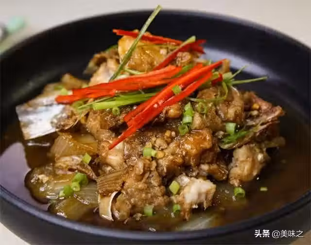 5、燜夠20分鐘之後,出鍋後,再往盤中倒入10克的蒸魚豉油、和切好的紅椒絲、蔥絲即可。