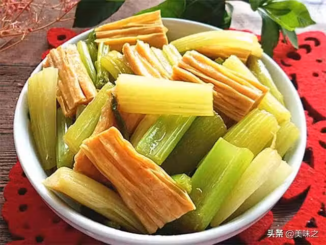 芹菜適量、腐竹適量、蔥適量、生抽適量、鹽適量、味精適量。