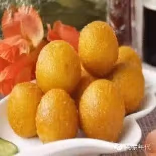 2、加油拌入玉米粉、糖之後搓成圓球。