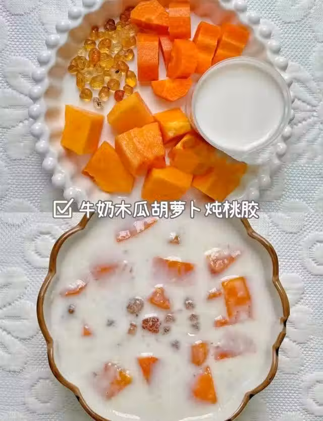 食材:木瓜,桃膠,牛奶,胡蘿蔔