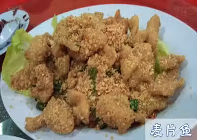1. 魚用蛋白,胡椒粉和鹽醃一下,沾上麵粉拿去炸熟,撈起。